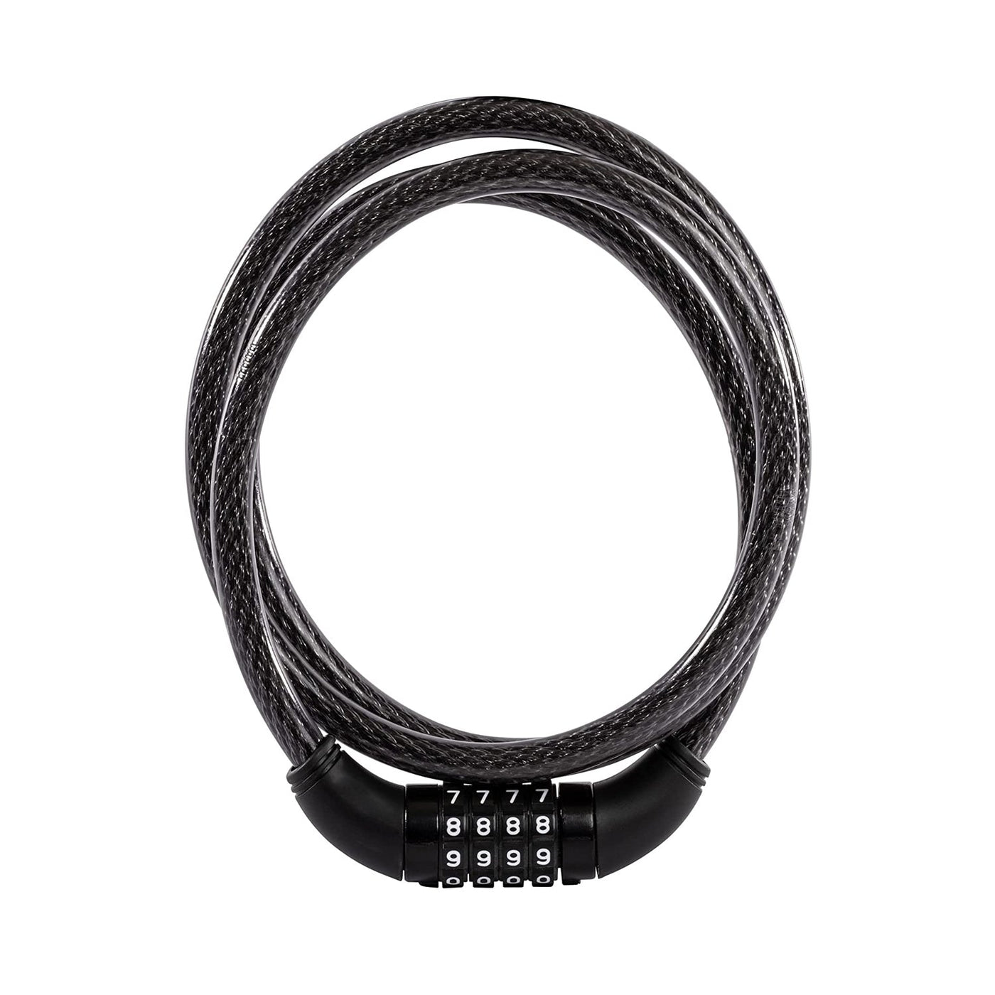 Cable lock is made from braided steel for strength and flexibility; Protective vinyl coating helps to prevent scratches