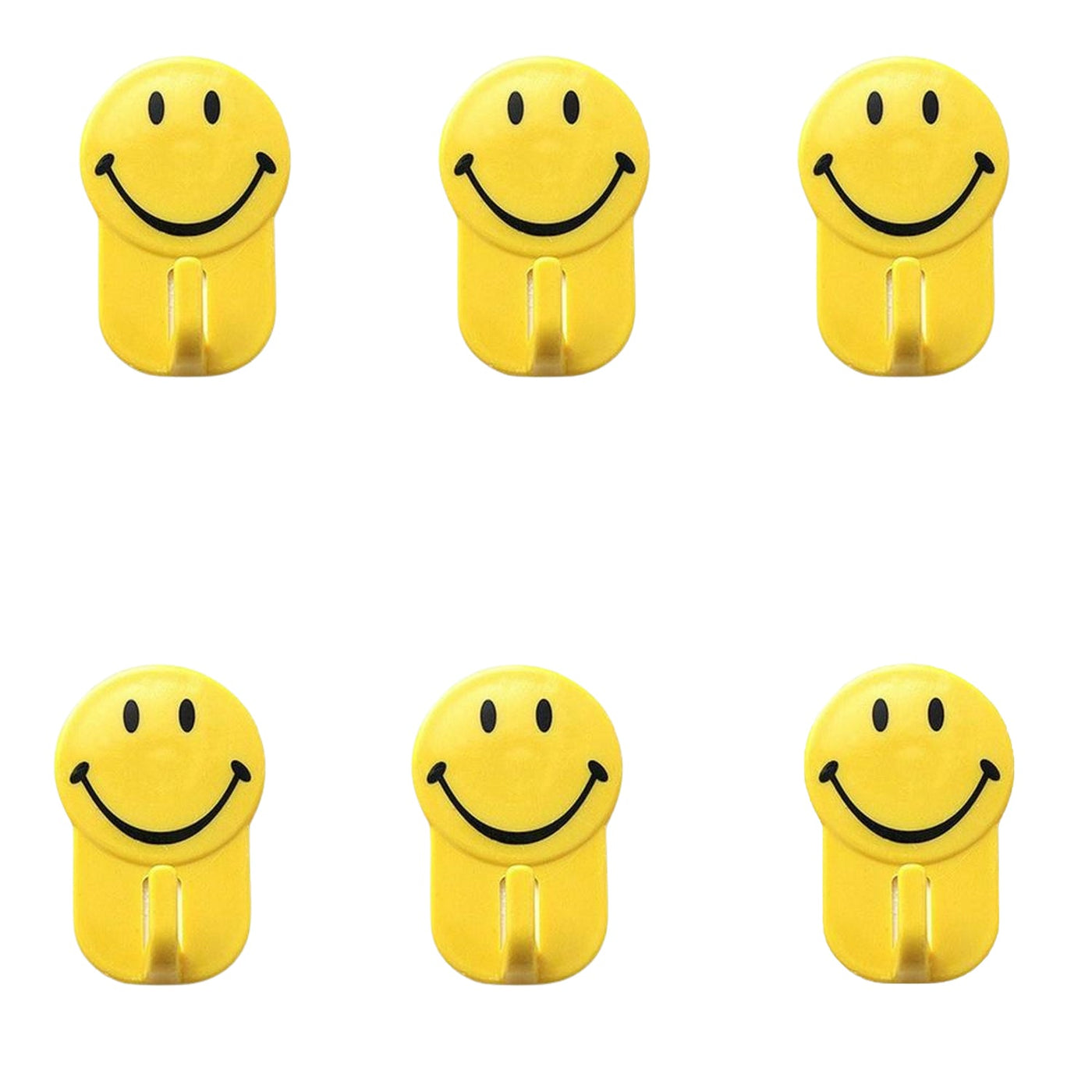 Plastic Self-Adhesive Smiley Face Hooks, 1 Kg Load Capacity (6pcs)