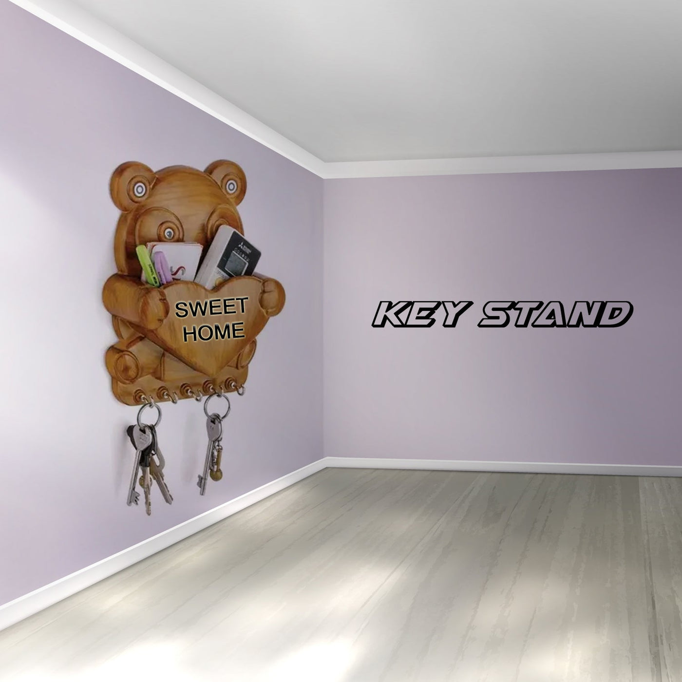 Cute Plastic Panda Key Holder, Wall Key Rack with 5 Hooks (1 Pc)