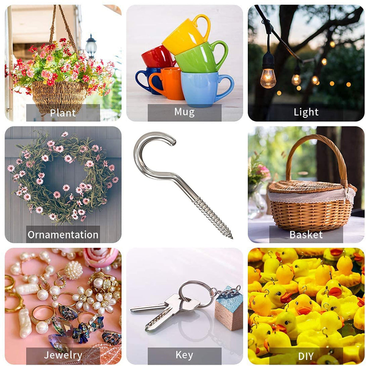 These heavy-duty eye hooks are made from durable stainless steel, ensuring strength and long-lasting use. Designed for easy screw-in installation, they feature an anti-rust coating, making them perfect for outdoor or harsh environments. The self-tapping design allows for quick and effortless installation, eliminating the need for pre-drilling. Ideal for securing cables, wires, or other attachments, these eye lag screws are perfect for use with wood and provide a strong, reliable anchor point. Perfect for both residential and industrial applications.