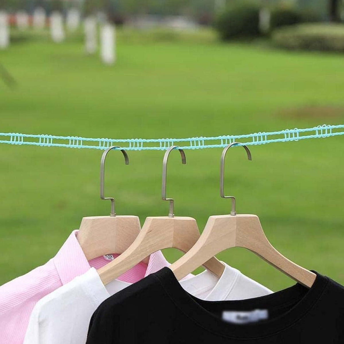 Not only just a laundry drying rope,the little slots within the clothesline hold the hangers to prevent them from all rolling into one another,keep the clothes separated and the hangers always stayed on the line.There's no way a hanger can fly off the line if the wind picks up