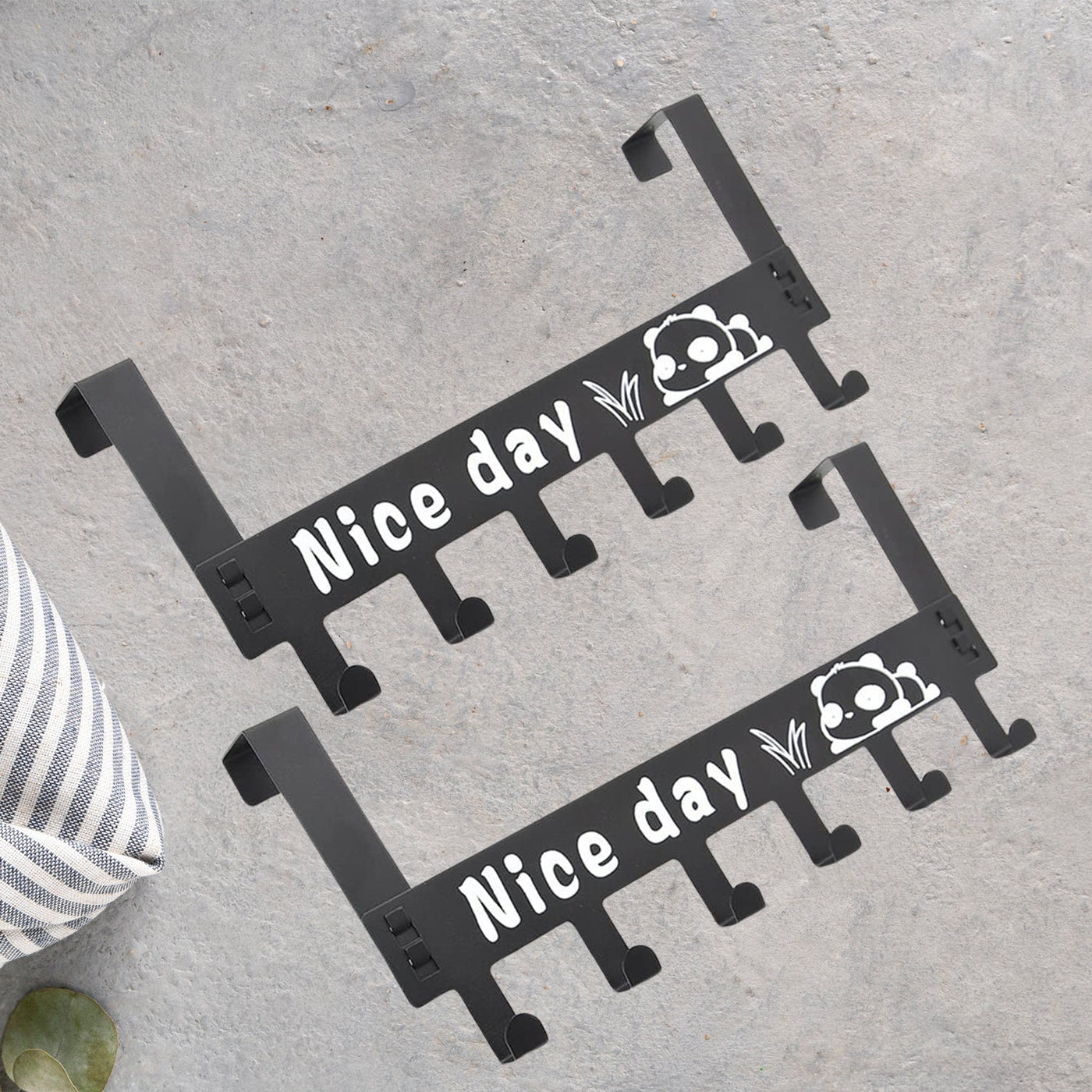 Heavy-Duty Carbon Steel Cartoon Nice Day Over Door Hook Hanger Rack, Towel Hanger, Removable Door Hook, Coat, Scarf, Cloths Hanger (2 pc / 6 Hook / Black Color)
