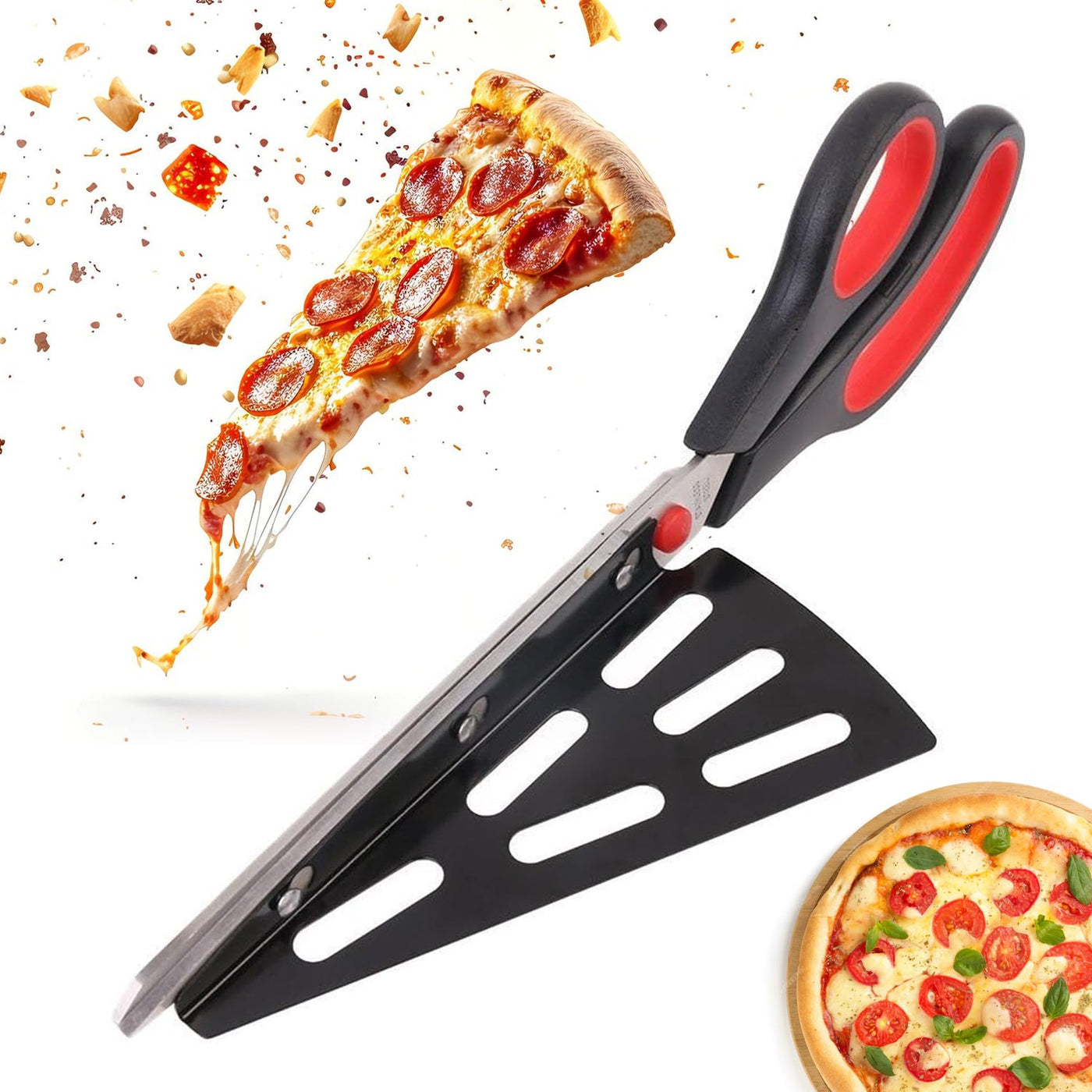 Stainless Steel Pizza Cutter Scissors Plastic Handle with Removable Spatula