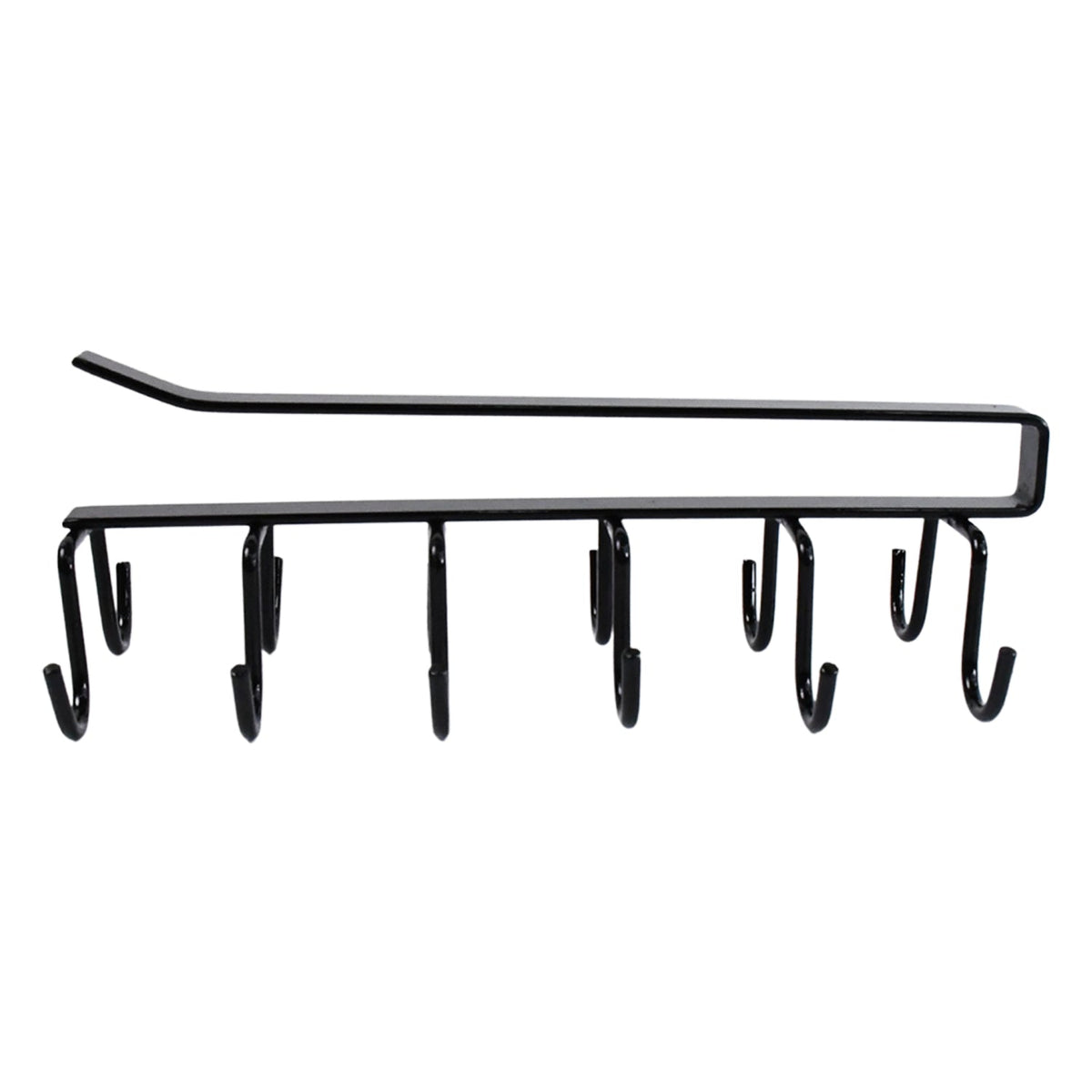 Double-Row Metal cupholder Rack, Kitchen Mug Storage Organizer, Multi-Purpose Iron Hanger with 6 Hooks, No-Drill Under Cabinet Cupboard Shelf, Space-Saving and Durable (1 Pc)