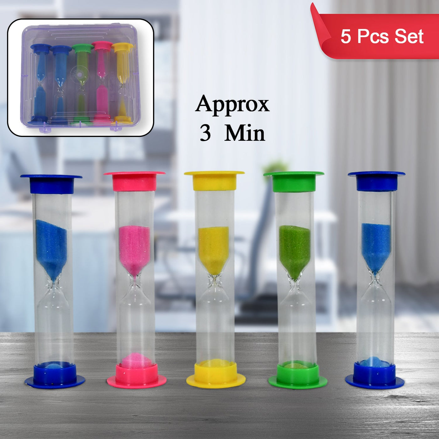 Plastic Hourglass Sand Timer Set – 3-Min Sand Clock for Kitchen, Office, School & Kids (5 Pc)