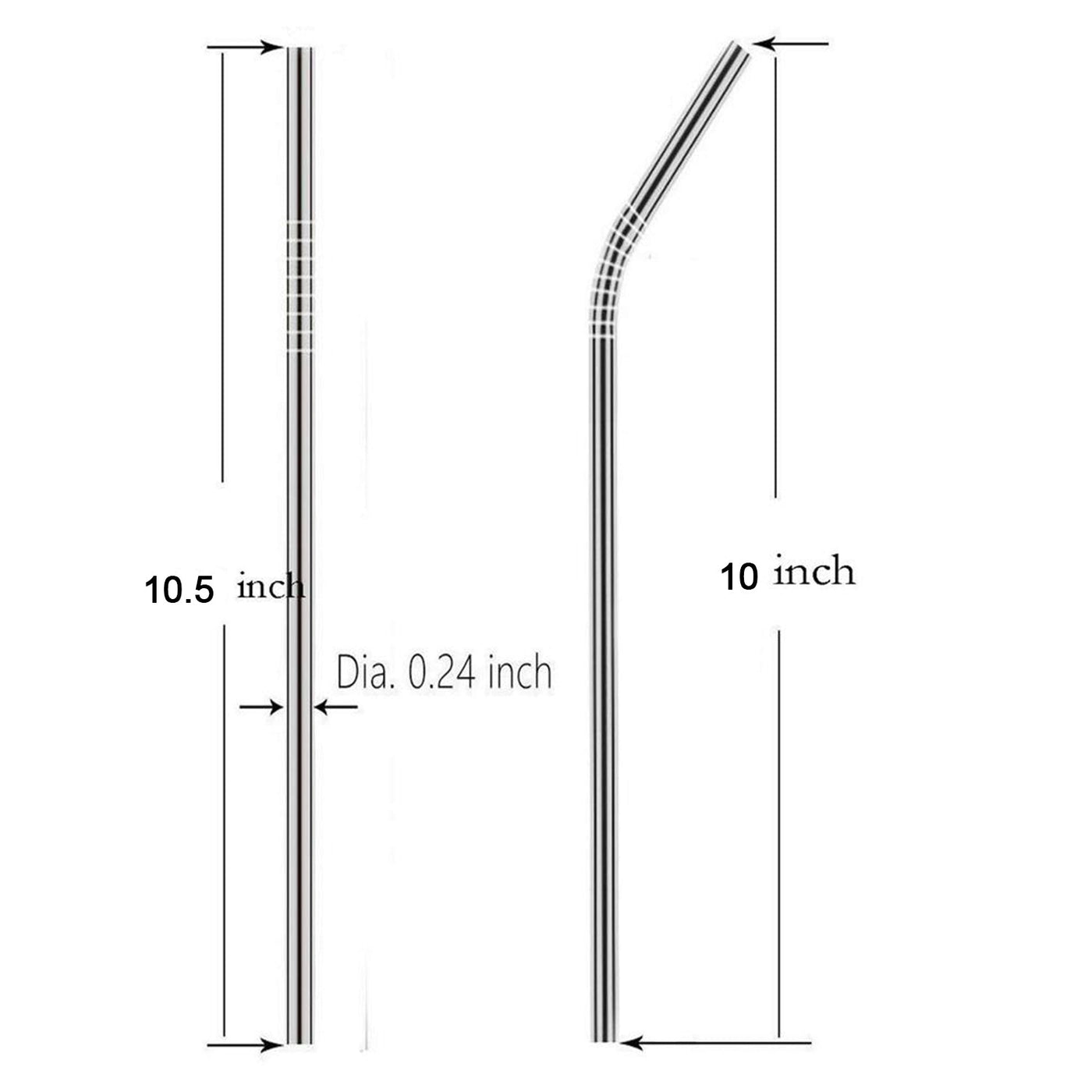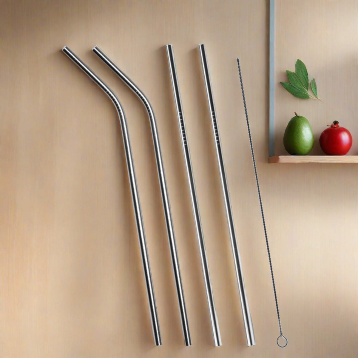 Set of 4 Stainless Steel Straws & Brush (2 Straight straws, 2 Bent straws, 1 Brush)