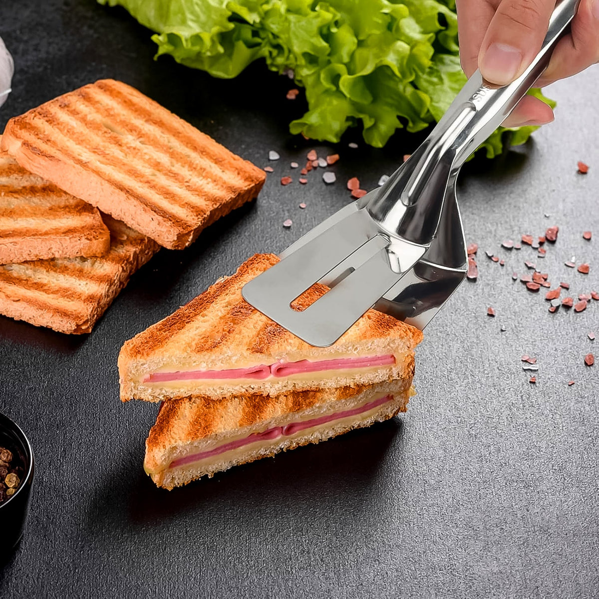 Stainless Steel Cooking Tong - Multifunctional Slotted Fish Double-Sided Spatula (1 Pc / 23 Cm)