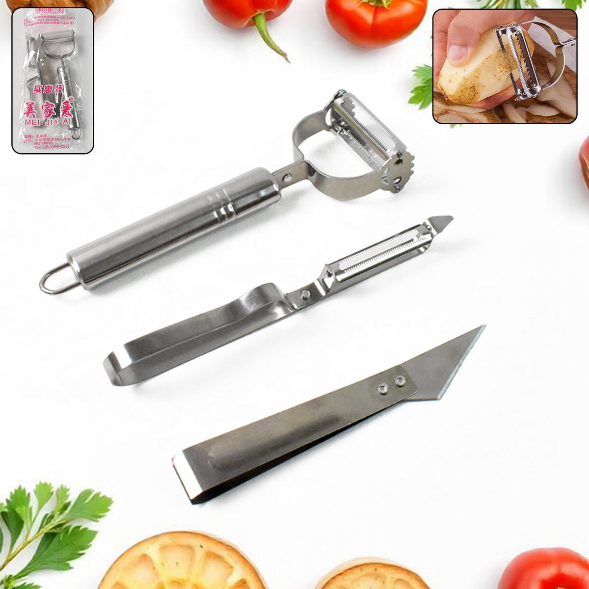 3 In 1 Stainless Steel Vegetable and Fruit Peeler Set (3 Pcs Set)