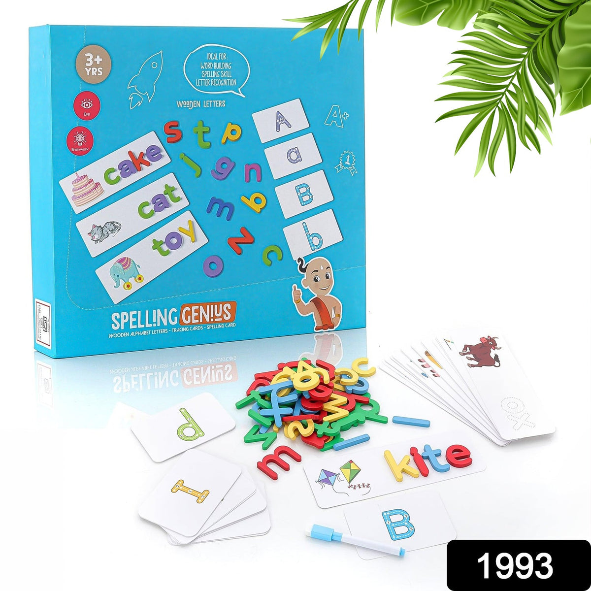Spelling Genius Game for Kids, Wooden Alphabet Blocks with Wipe & Clean Cards, Early Educational Spelling Game for Kids Above 3 Years (1 Set)