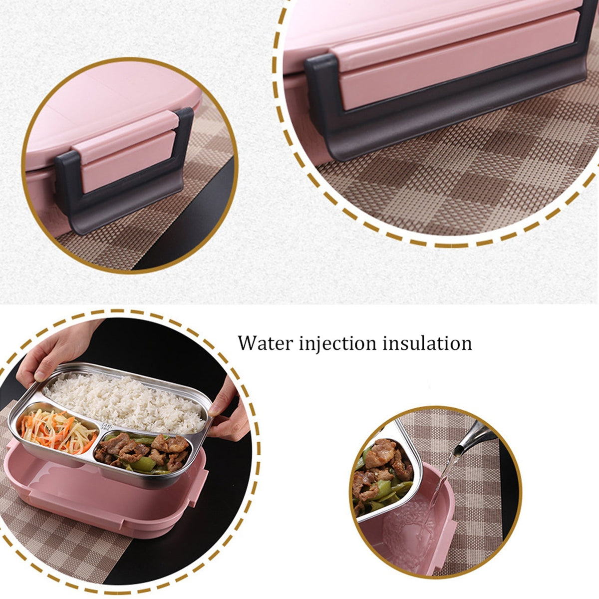 White Transparent Lunch Box for Kids and adults, Stainless Steel Lunch Box with 3 Compartments.