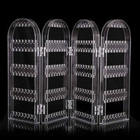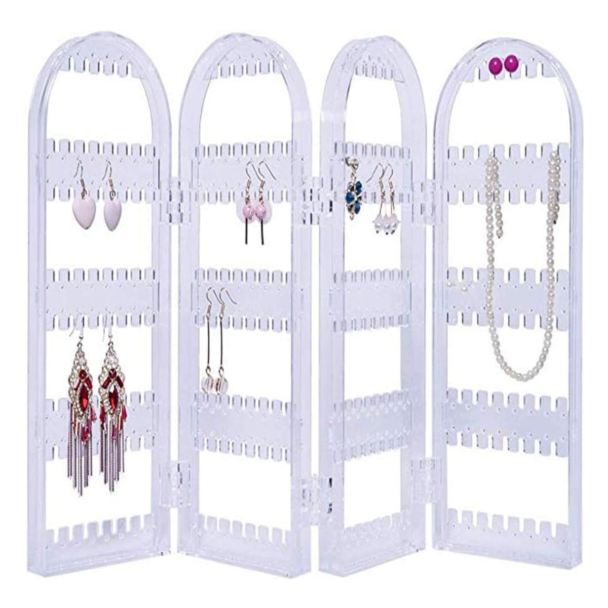 Acrylic Earrings Holder for Women, 4 Doors Foldable Screen Necklace Display Rack, Hanging Jewelry Organizer Double Sided Stand Display, Clear (1 Set)