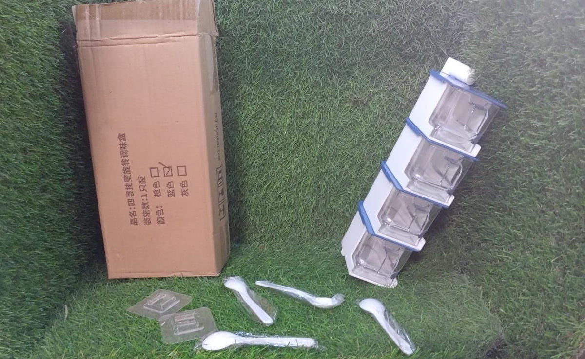 4 Layer Creative Adhesive Wall Hanging Rotary Seasoning Box Condiment Storage Container Kitchen with Spoon Pepper Sugar Spice Jar Rack Food
