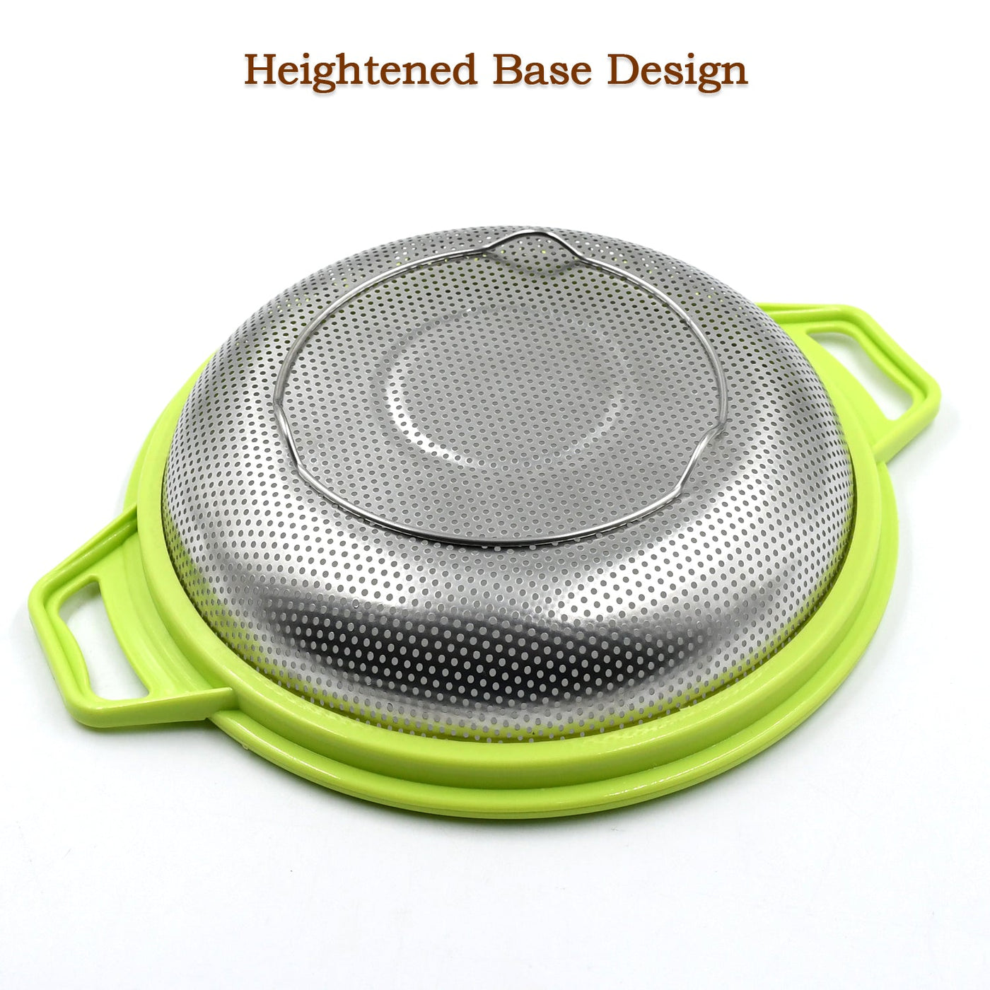 7145 Stainless Steel Colander with Handle, Large Metal Green Strainer for Pasta, Spaghetti, Berry, Veggies, Fruits, Kitchen Food Colander, Dishwasher Safe